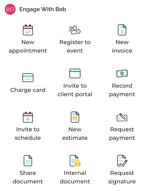You can also click the plus icon to view a list of "Quick Actions" you can take from the contact/client card.